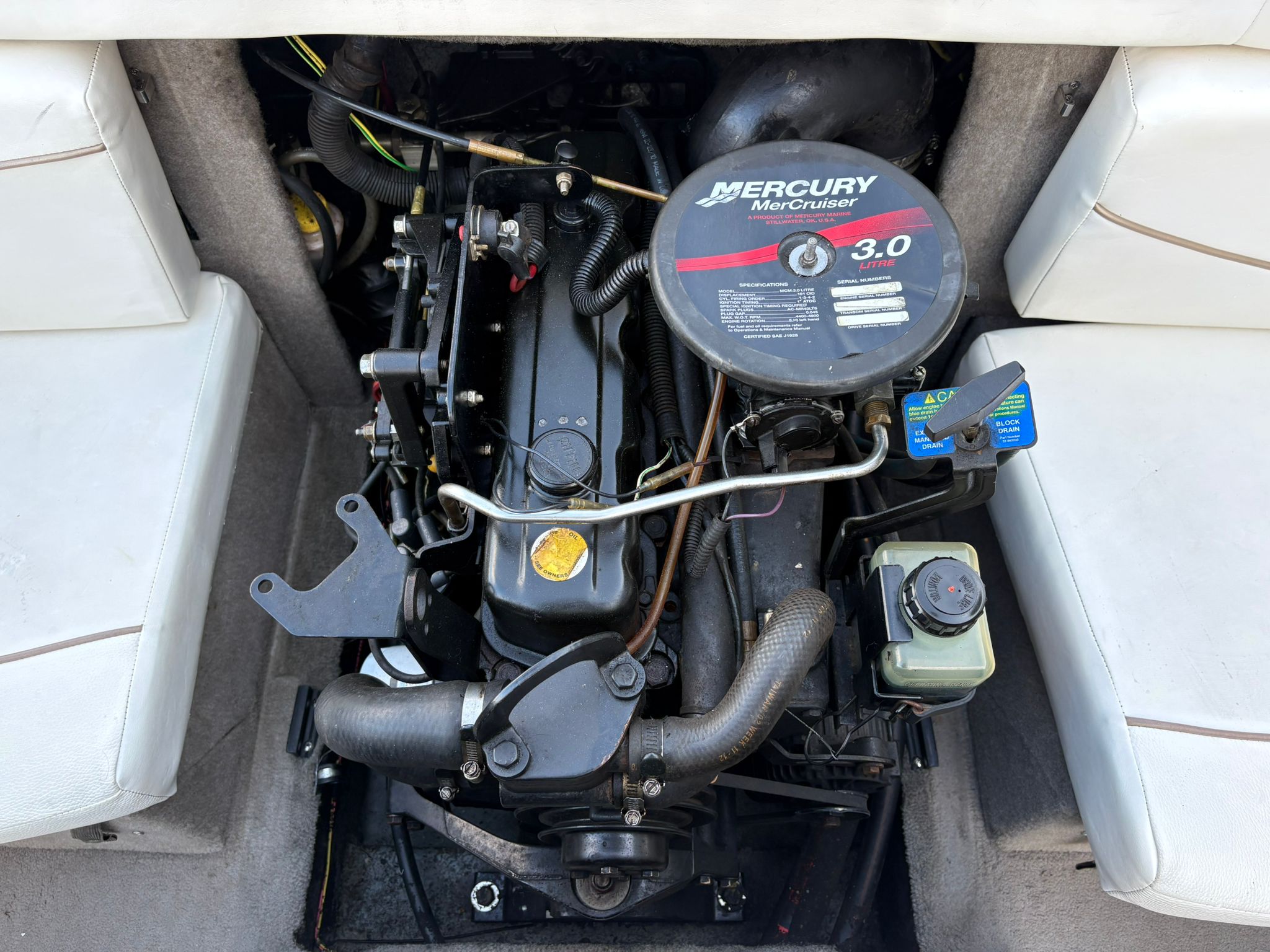 Onder de motorkap ligt een krachtige en zuinige MerCruiser 3.0L (135 pk) benzinemotor, goed voor een soepele en sportieve vaart. Dankzij het lichte gewicht en de efficiënte romp komt de boot vlot in plané en biedt hij uitstekende vaareigenschappen.