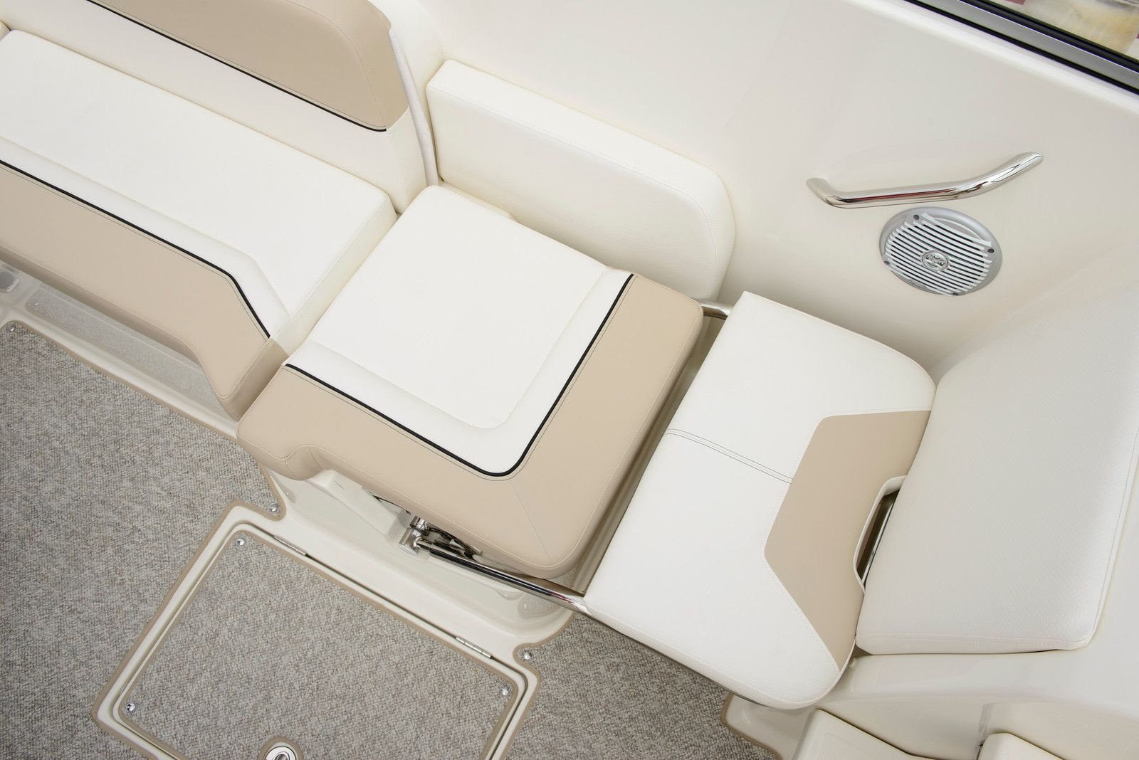 Aan dek valt de 742R direct op door zijn doordachte lay-out en hoogwaardige afwerking. De grote achterste zonnelounge is perfect om te ontspannen en te genieten van de zon, terwijl de ruime kuip uitnodigt tot gezellig samenzijn met familie en vrienden. De verstelbare zitplaatsen kunnen eenvoudig worden aangepast aan elke situatie – van ontspannen loungen tot samen dineren. De optionele refreshment center met koelkast en spoelbak maakt het gemakkelijk om onderweg te genieten van hapjes en drankjes. Dankzij de uitgebreide zwemplatforms met geïntegreerde zwemtrap wordt een verfrissende duik in het water kinderspel, terwijl het opstappen aan boord net zo moeiteloos verloopt.