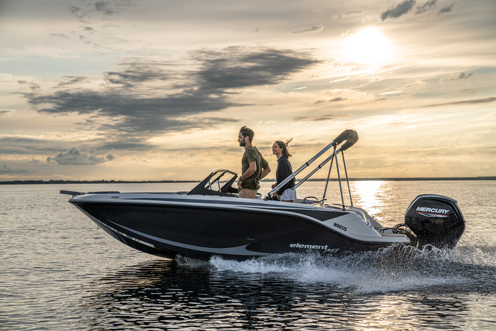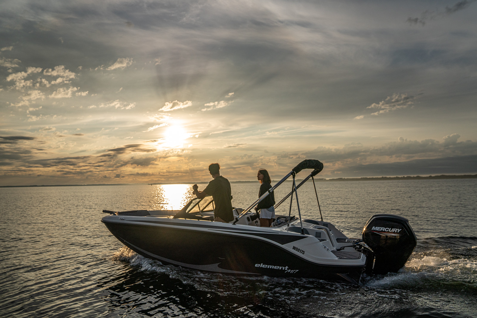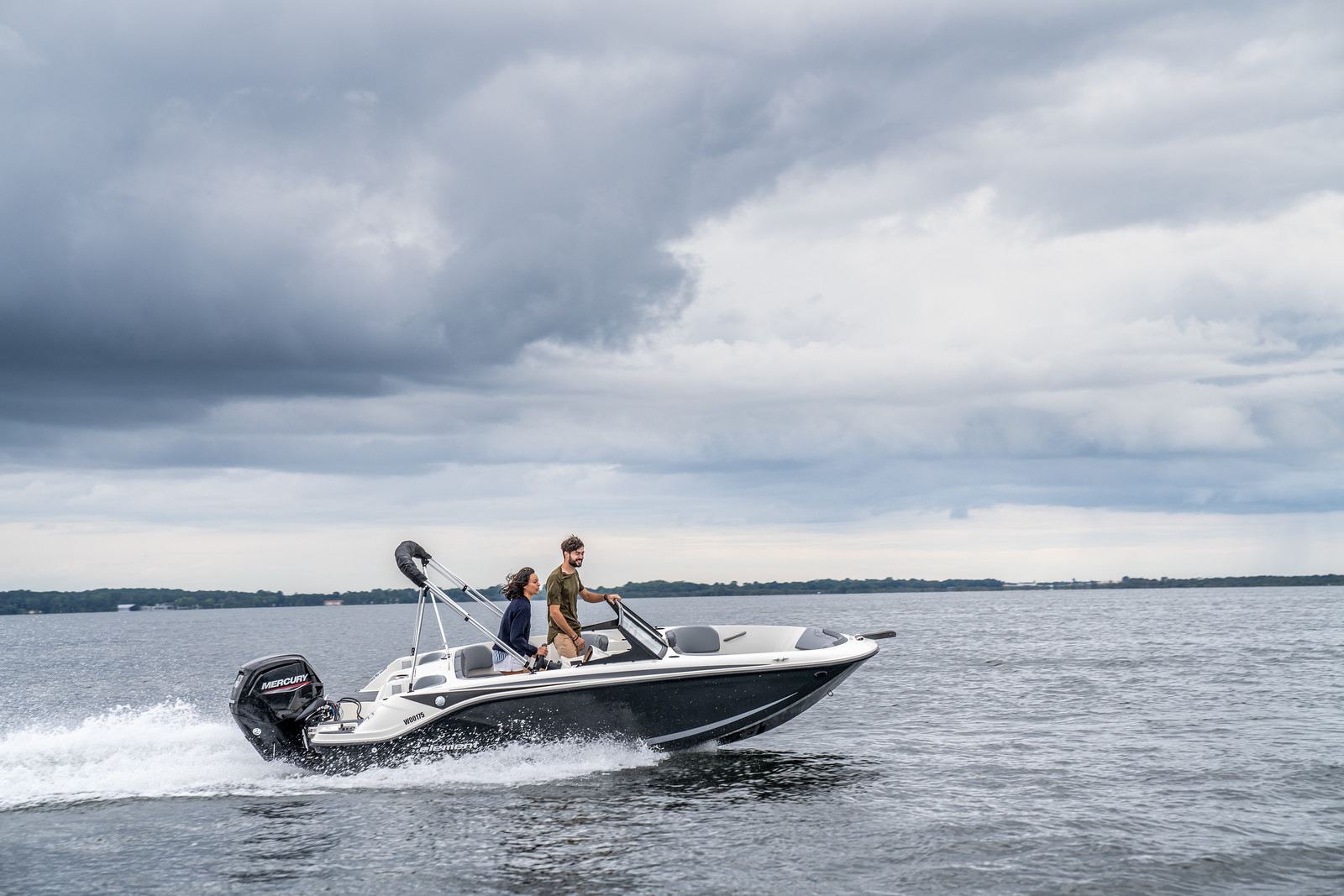 De Bayliner M17 is leverbaar met Mercury buitenboordmotoren tot 115 PK, waarmee de boot moeiteloos accelereert en soepel manoeuvreert. De romp is ontworpen voor efficiënt brandstofverbruik en stabiel vaargedrag – ideaal voor tochten over meren, rivieren of kustwater.