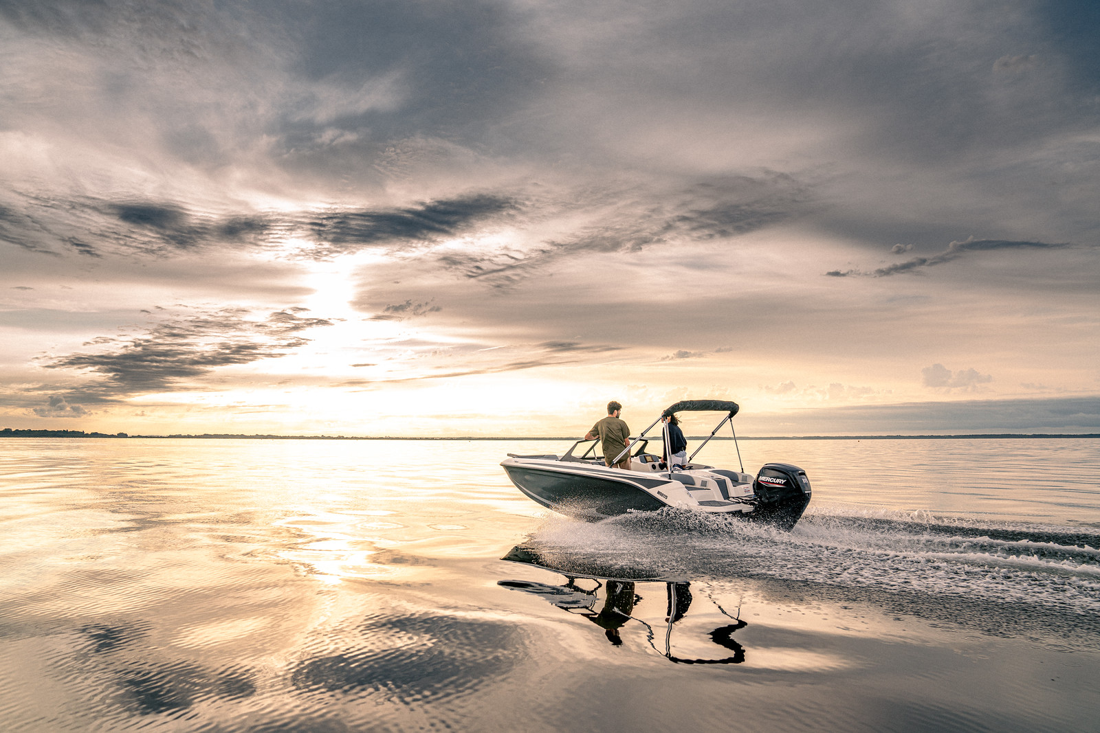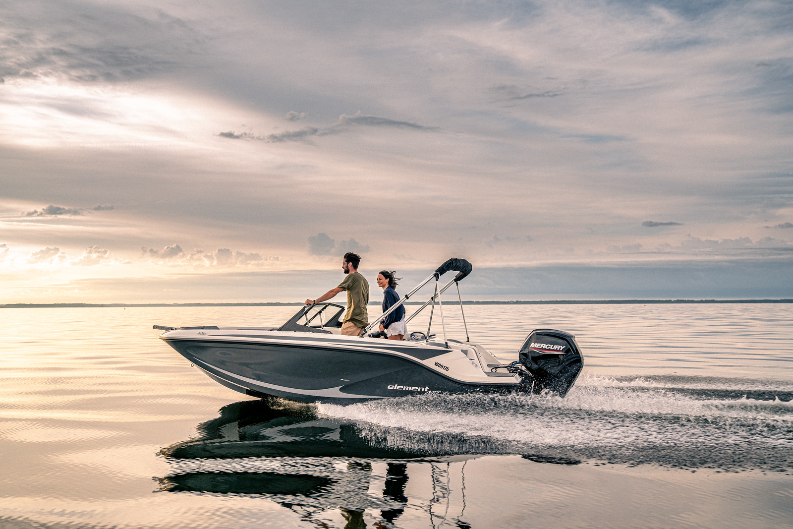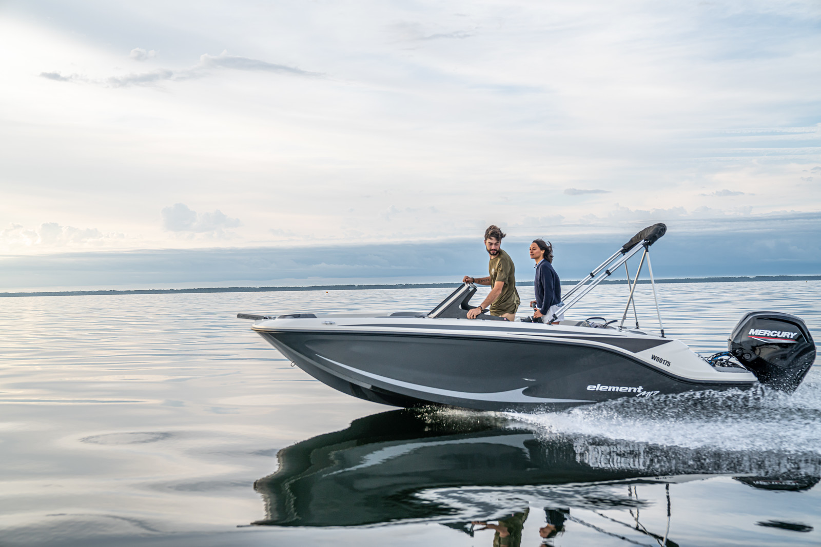 De Bayliner M17 is leverbaar met Mercury buitenboordmotoren tot 115 PK, waarmee de boot moeiteloos accelereert en soepel manoeuvreert. De romp is ontworpen voor efficiënt brandstofverbruik en stabiel vaargedrag – ideaal voor tochten over meren, rivieren of kustwater.