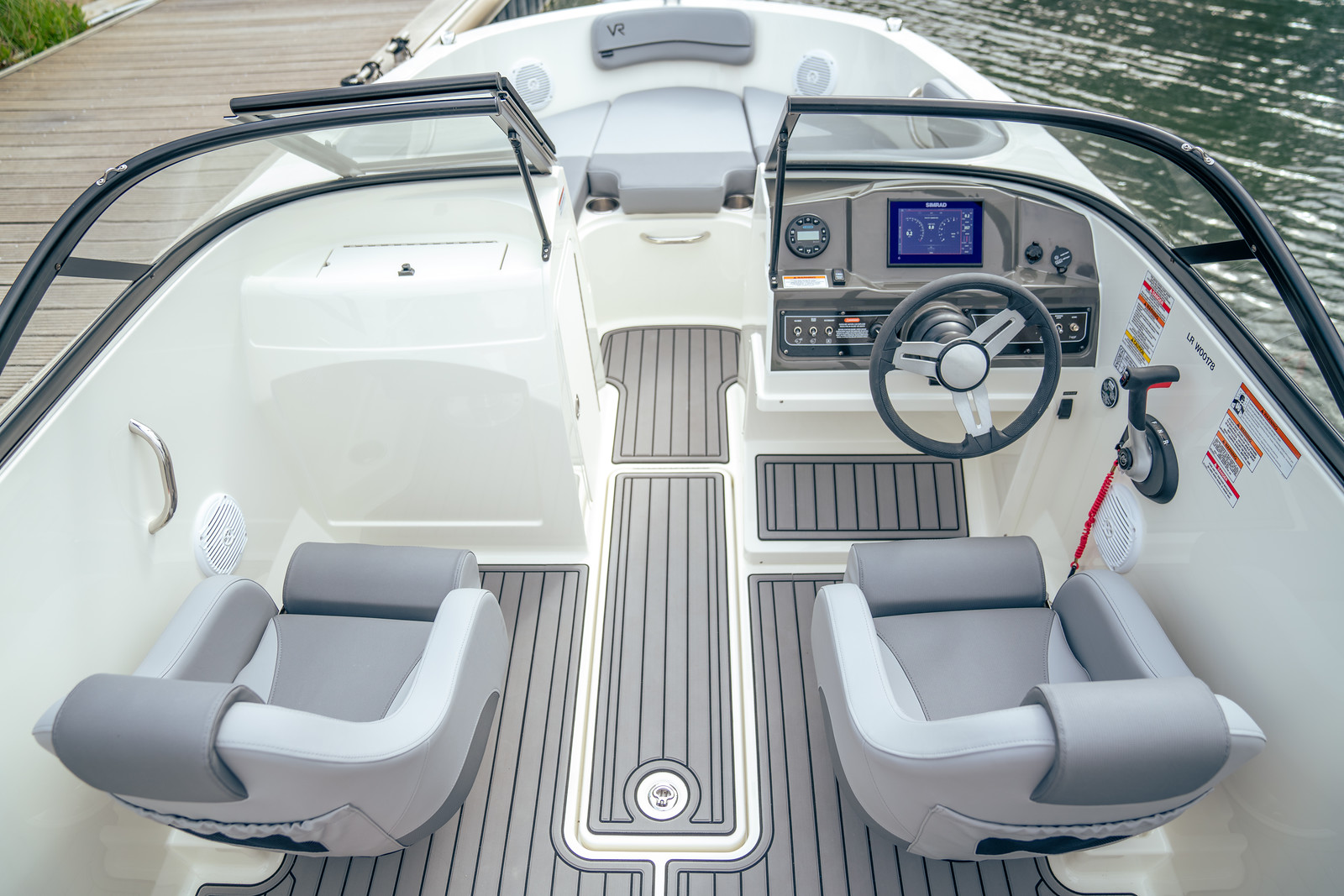De VR4 is de nieuwste telg in onze VR-serie van sterk geëvolueerde bowriders. Hij is gemakkelijk trailerbaar, te water te laten en op te bergen - en erg leuk om te gebruiken. Het kleinste model uit de VR-serie biedt veel binnenruimte dankzij ons BeamForward™-ontwerp, dat de volledige breedte verder naar voren brengt voor meer comfort en capaciteit dan de traditionele spitse bogen. Ons AftAdvantage™ ontwerp vergroot de zitruimte achteraan door deze te verplaatsen naar het achterste punt van het loopvlak, waardoor het zwemplatform daarachter kan uitsteken. Dat betekent meer ruimte voor comfort, zoals beweegbare rugleuningen voor veelzijdige zitconfiguraties, een windscherm voor de boeg en een optioneel vulkussen die samen een extra boegzit creëren, optionele zonnekussen en inzetstukken die de zonneweide uitbreiden, en veel handige opbergruimte overal.