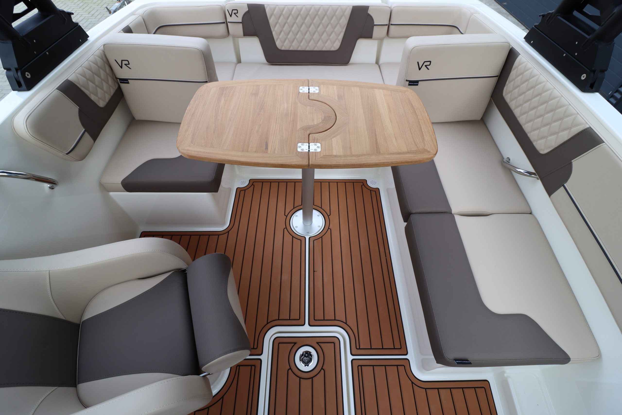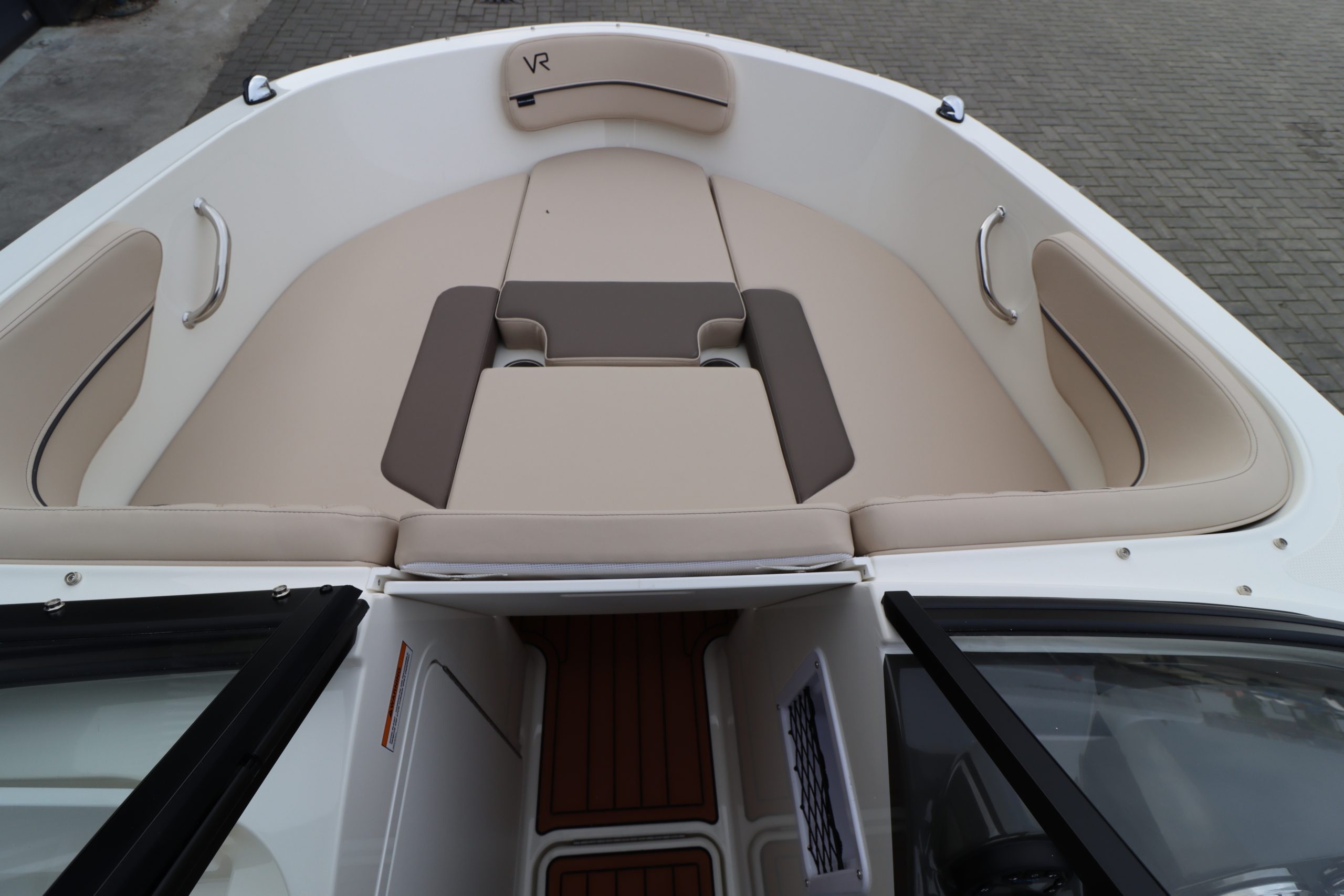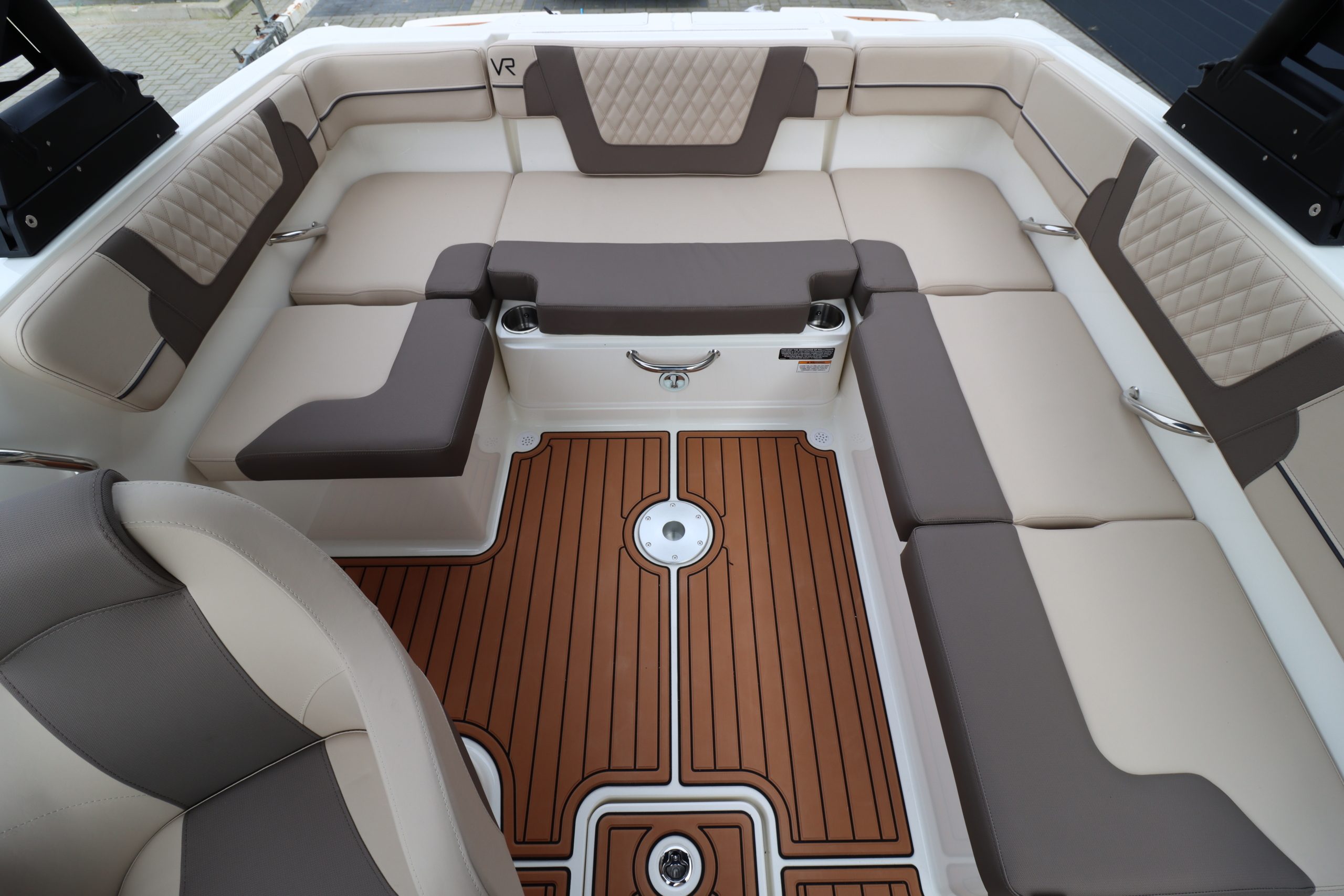 Wat deze boot bijzonder maakt, is de rijke uitrusting. Het interieur in Desert Sand straalt warmte en luxe uit, aangevuld met SeaDek teakmatten in de kuip en op het zwemplatform. Voor ultiem comfort is de boot voorzien van het Cushion Package, waarmee je profiteert van een verbeterde helmstoel, een bow filler cushion en een verstelbare rugleuning. Ook het Preferred Equipment Package met een stijlvolle teak tafel en roestvrijstalen details tilt de afwerking naar een hoger niveau.