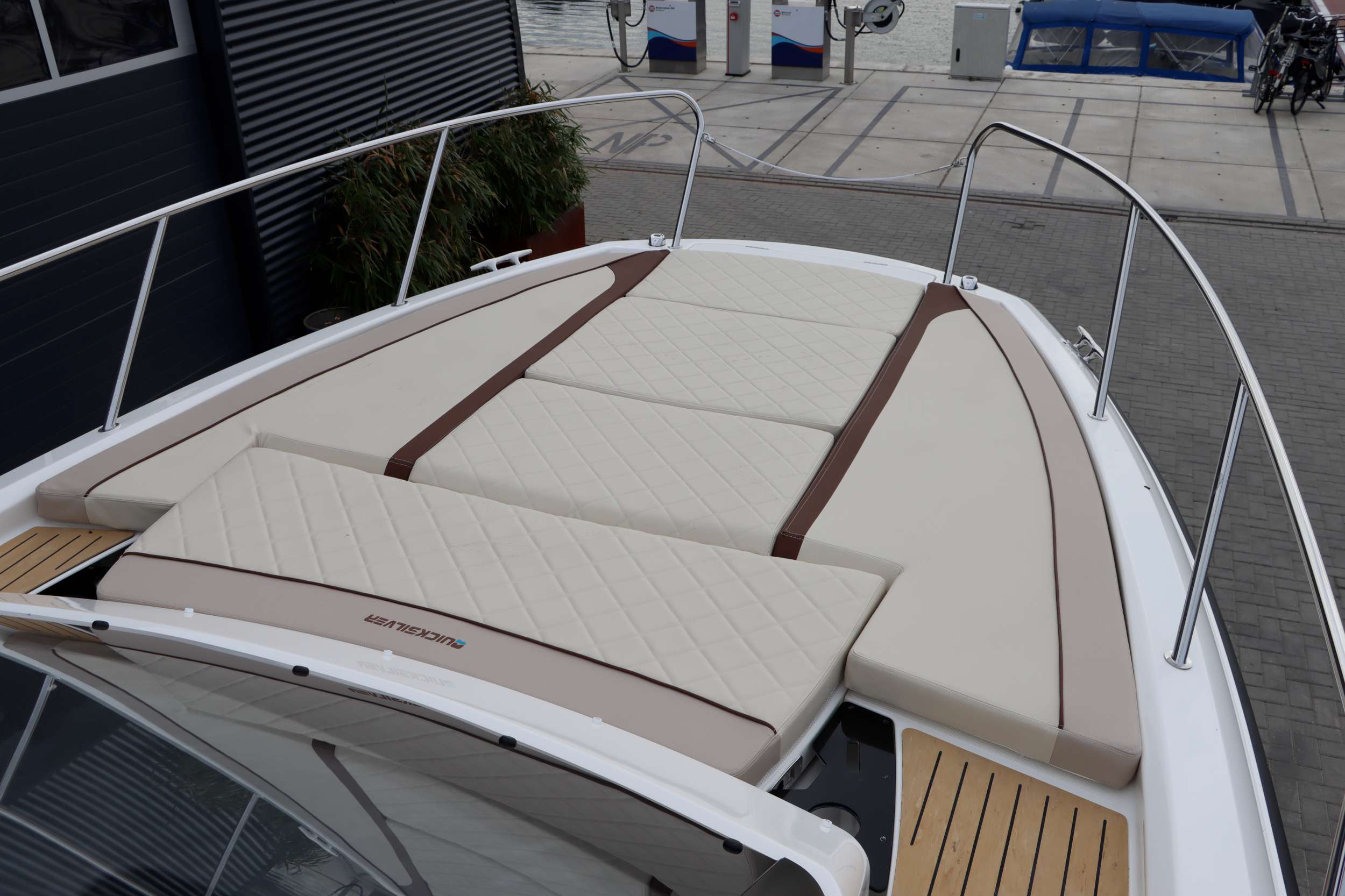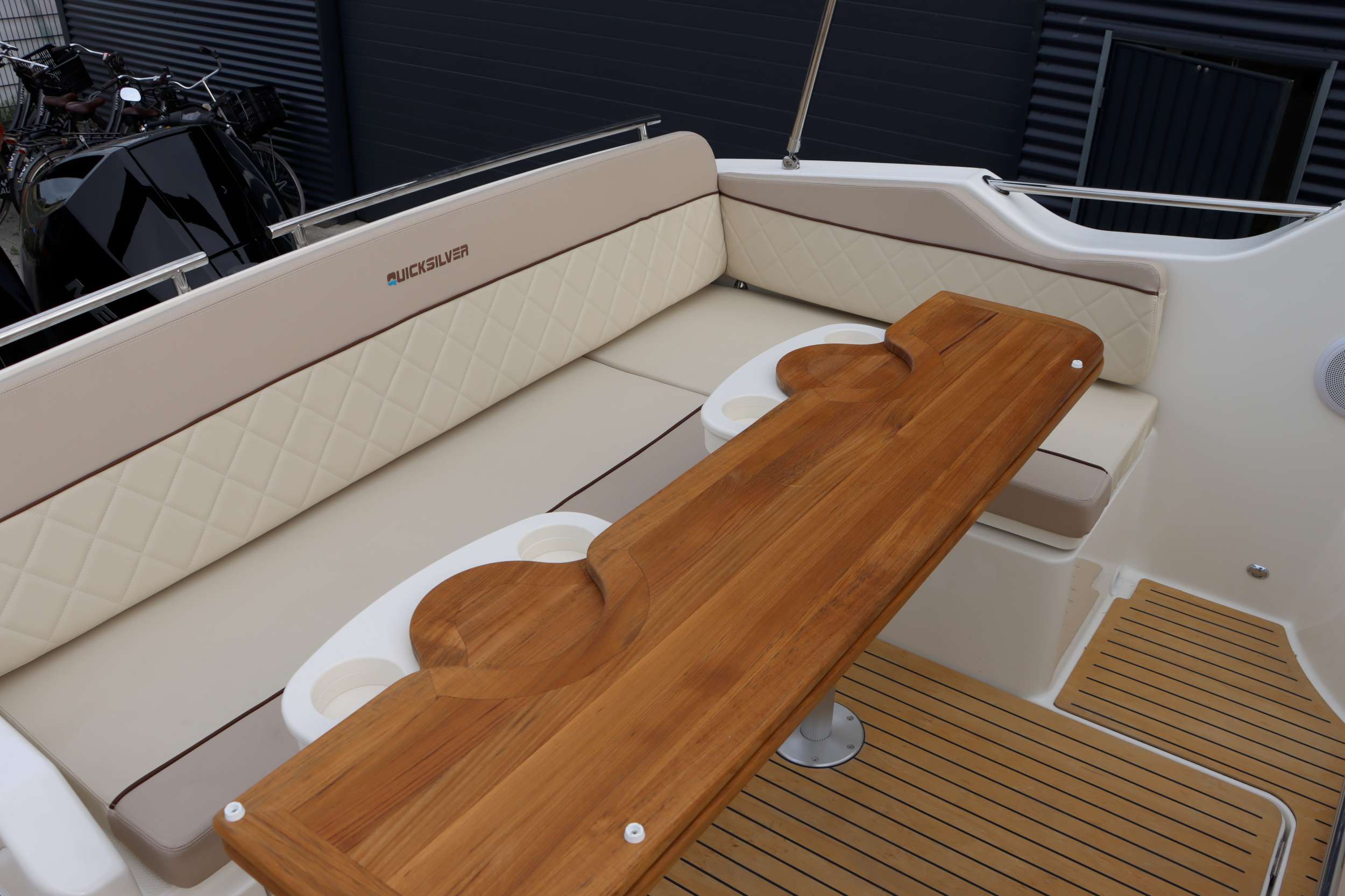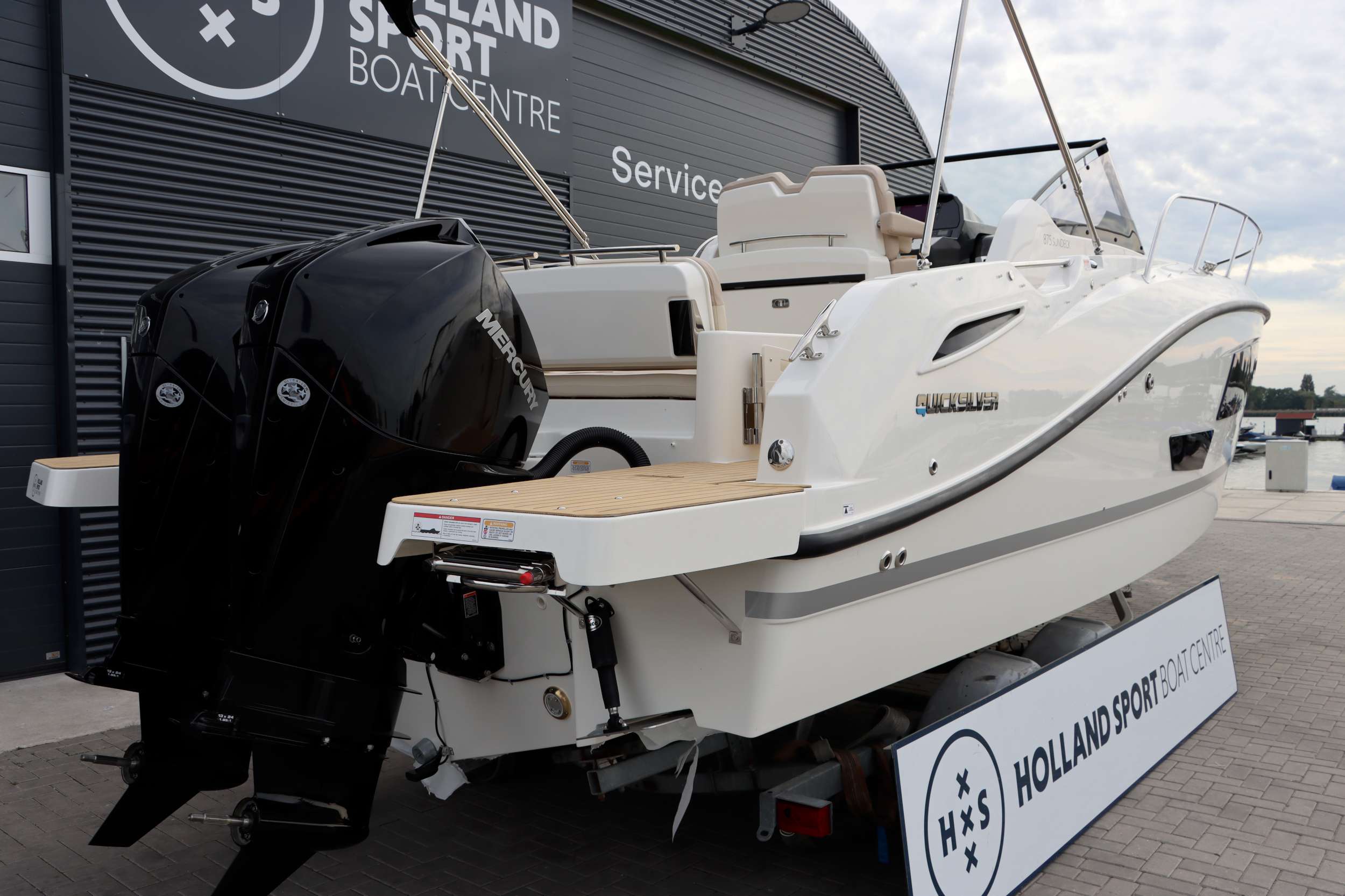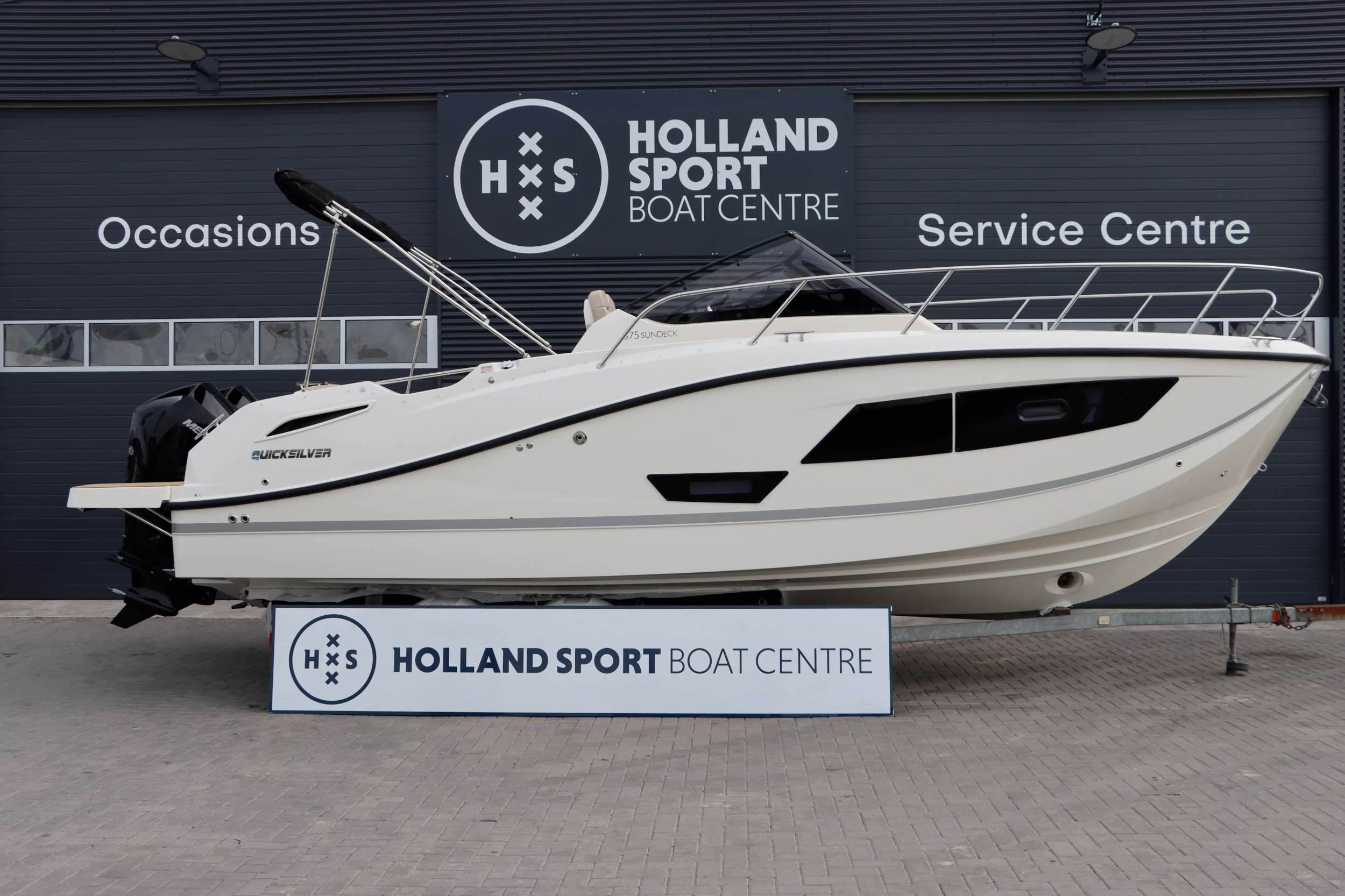 Quicksilver 875 Sundeck Unieke uitvoering in topstaat! NU TE KOOP! Deze Quicksilver 875 Sundeck is niet zomaar een exemplaar. De boot verkeert in nieuw staat en is voorzien van een aantal aangebrachte extra’s die de boot doet onderscheiden van elke andere 875 Sundeck. Met slechts 108 vaaruren op de twee krachtige Mercury 225 PK motoren en de leeftijd van slechts 1 jaar is dit een unieke kans om bezitter te worden van deze boot. Een van de meest opvallende details is het LED-lichtsysteem in de boxen. De verlichting is volledig naar wens van kleur te veranderen en kan zelfs meebewegen op de maat van de muziek. Dit geeft de boot ’s avonds een unieke en sfeervolle uitstraling, die past bij elke stemming. Het systeem is eenvoudig te bedienen via Lumishore, volledig geïntegreerd in het Simrad-navigatiescherm, makkelijk te bedienen dus. Aan comfort en functionaliteit is eveneens gedacht. De boot is uitgerust met een Victron MultiPlus omvormer voor een betrouwbare stroomvoorziening, en er zijn extra stopcontacten geplaatst voor meer gebruiksgemak. Daarnaast is het Fusion audiosysteem vernieuwd: de radio is vervangen door het meest recente model met kleurenscherm, wat zorgt voor een moderne en overzichtelijke bediening. Ook de versterker is vernieuwd, waardoor het volle vermogen van de speakers volledig tot zijn recht komt. Daarnaast is er later een RVS anker met RVS ankerketting toegevoegd dit maakt de boot ideaal om op een mooie plek te kunnen stilliggen. Binnenin biedt de 875 Sundeck een lichte, ruime cabine met een tweepersoonsbed en toilet. Bovendeks is er volop ruimte om te genieten: een groot zonnedek, een comfortabele zithoek en een royaal zwemplatform en de geintegreede wetbar (keuken) maken het de ideale boot voor lange dagen of een ontspannen weekend op het water. De vaareigenschappen zijn precies wat je van dit vlaggenschip mag verwachten: stabiel, sportief en betrouwbaar. De dubbele Mercury’s leveren ruim vermogen en zorgen voor een soepele, gecontroleerde vaart onder alle omstandigheden.