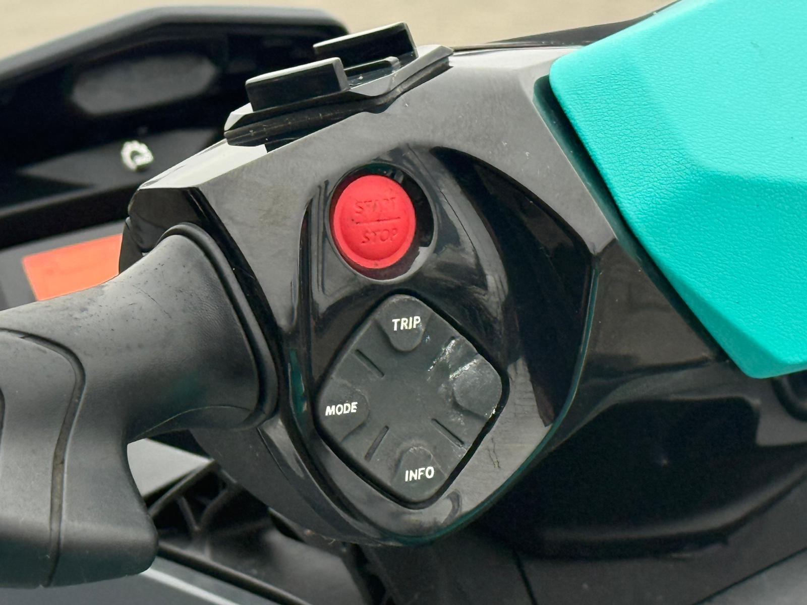 Deze Sea-Doo GTI 130 uit 2023 in de frisse kleur White / Neo Mint is een perfecte mix van stijl, betrouwbaarheid en pure waterpret. De waterscooter is jong gebruikt, verkeert in uitstekende staat, en is volledig klaar om meteen het water op te gaan. Met zijn opnieuw ontworpen GTI-platform biedt hij een lager zwaartepunt dat zorgt voor indrukwekkende stabiliteit, zowel tijdens het varen als wanneer je stil ligt. Dit geeft een veilig en vertrouwd gevoel, zelfs voor beginnende watersporters, terwijl de lichte en responsieve romp garant staat voor een speelse, dynamische vaarervaring. Het ruime, vlakke zwemplatform achterop maakt het op- en afstappen eenvoudig, en dankzij het handige LinQ-snelwisselsysteem breid je je waterscooter in een handomdraai uit met een koelbox, tas of extra brandstof – perfect voor een dag op het water.
