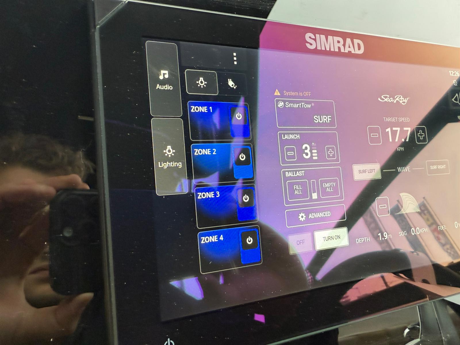 • Sea Ray customized surf interface powered by Mercury Marine® Smart Tow®