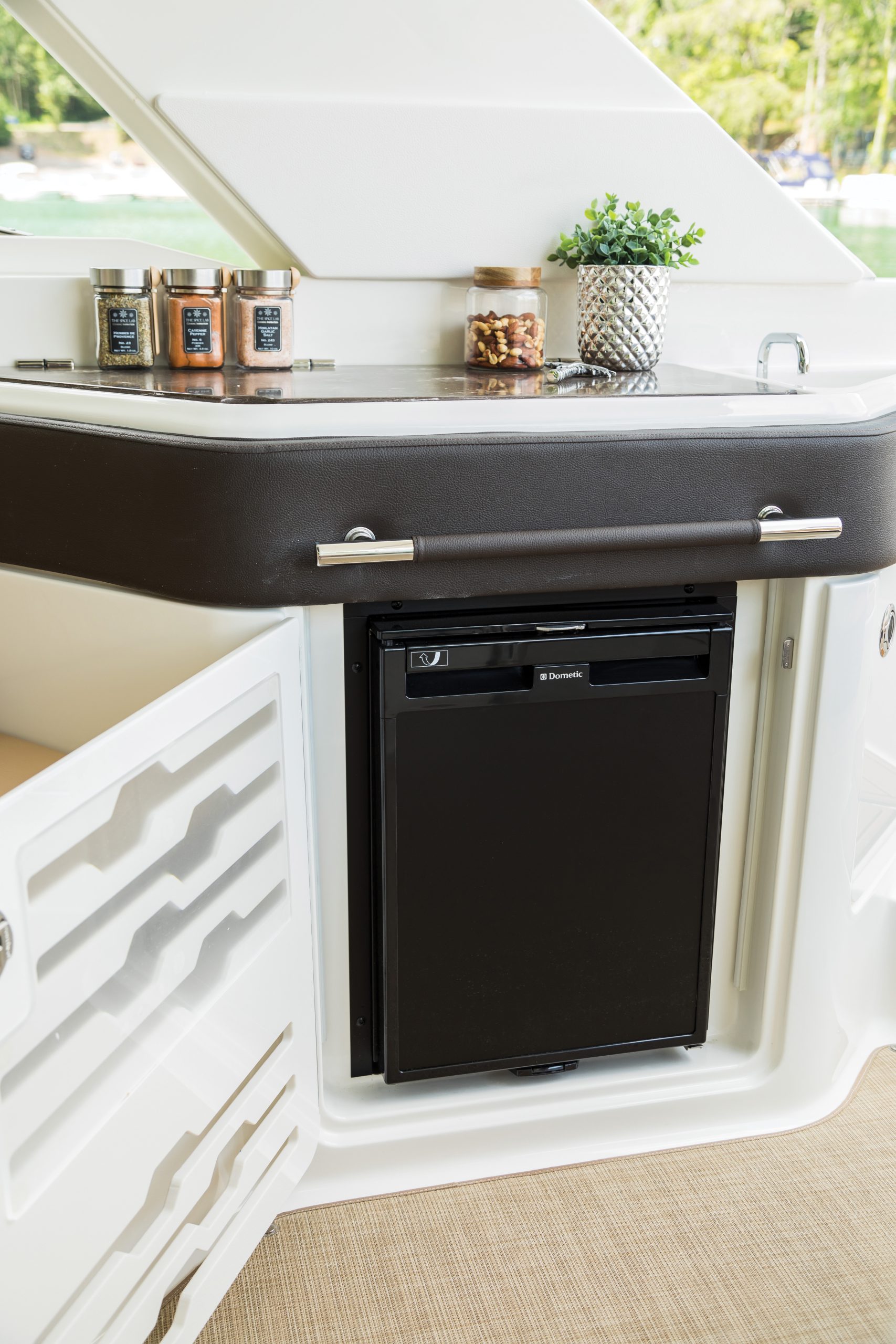 Van boeg tot achtersteven is het comfortniveau ongekend. De dubbel gestikte diamanten bekleding is gemaakt van hoogwaardig maritiem materiaal en voelt net zo luxe aan als het eruitziet. De zitopstelling is flexibel en uitnodigend, perfect afgestemd op zowel ontspannen loungen als gezellige gesprekken met je gezelschap.